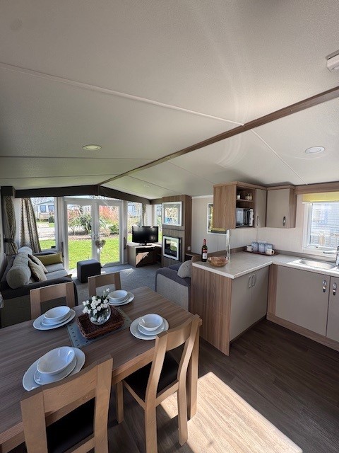 The Swift Bordeaux 38ft x 12ft, 2 bedroom is a beautifully presented holiday home that combines contemporary styling with a warm, relaxed feel. Designed with both comfort and practicality in mind, it offers spacious open-plan living that’s perfect for family time or entertaining guests.